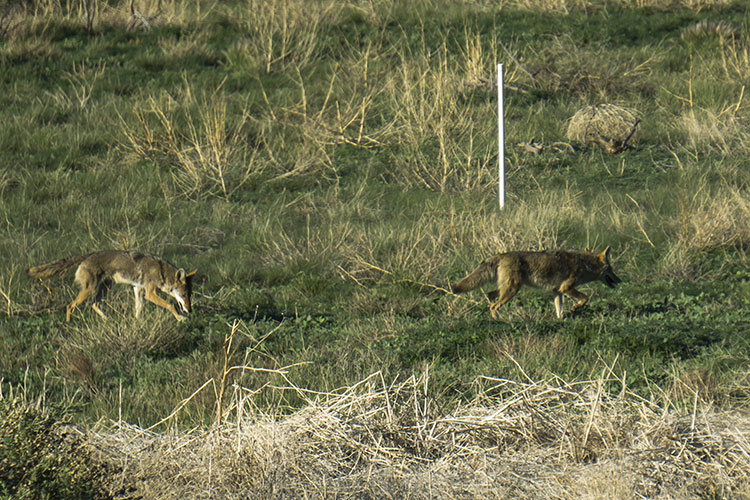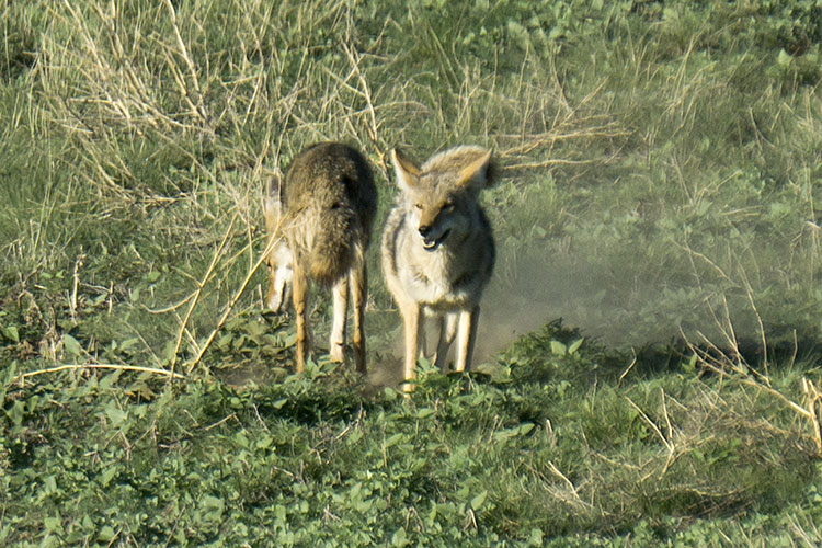A pair of coyotes were out in the greenbelt… hopefully catching a few prairie dogs.