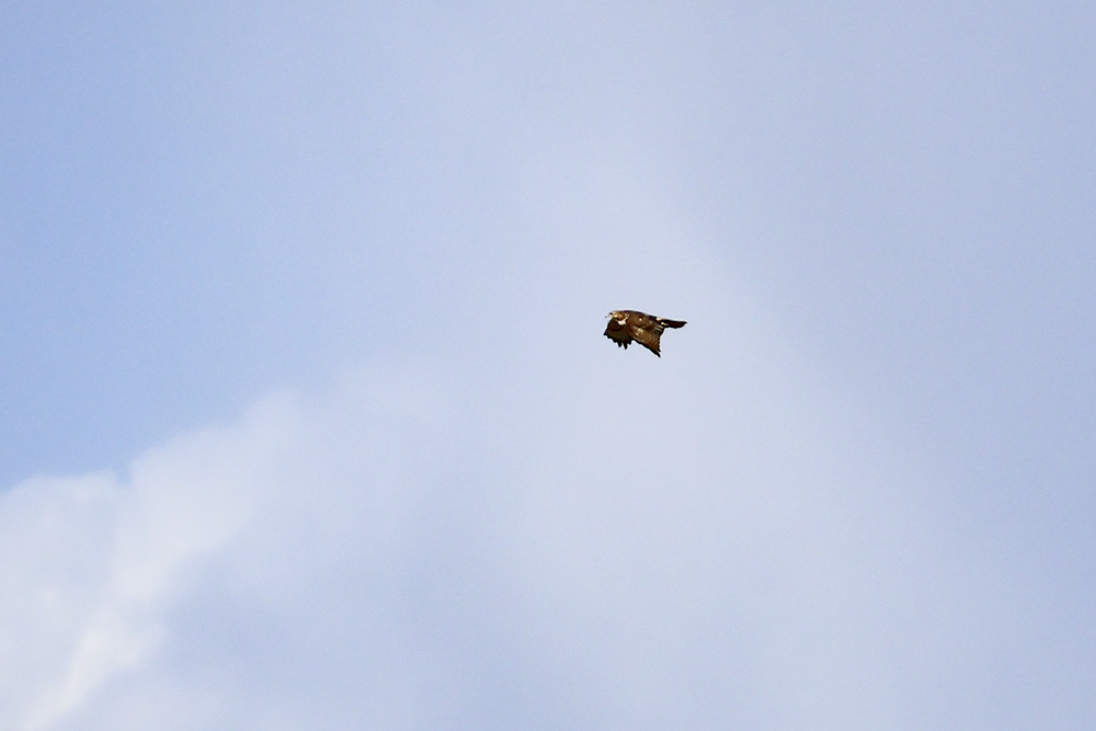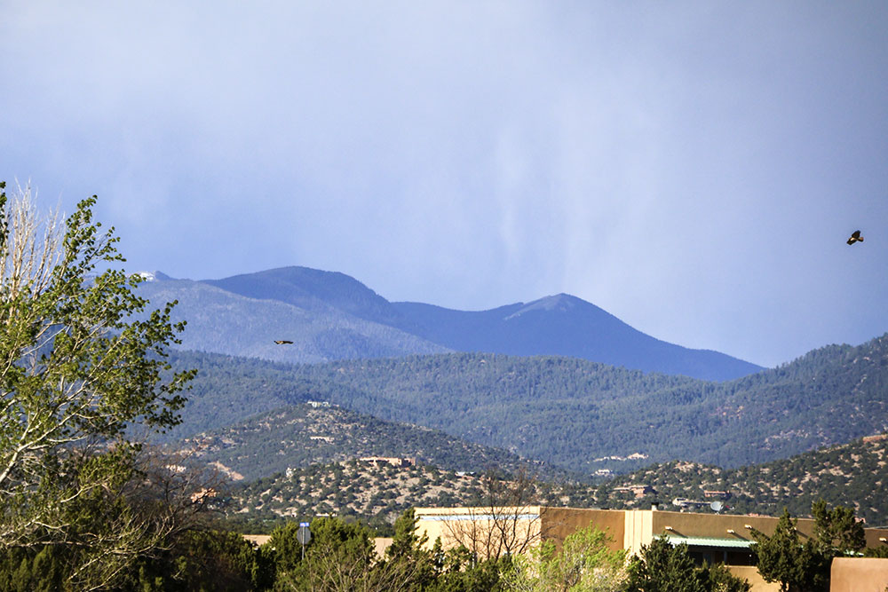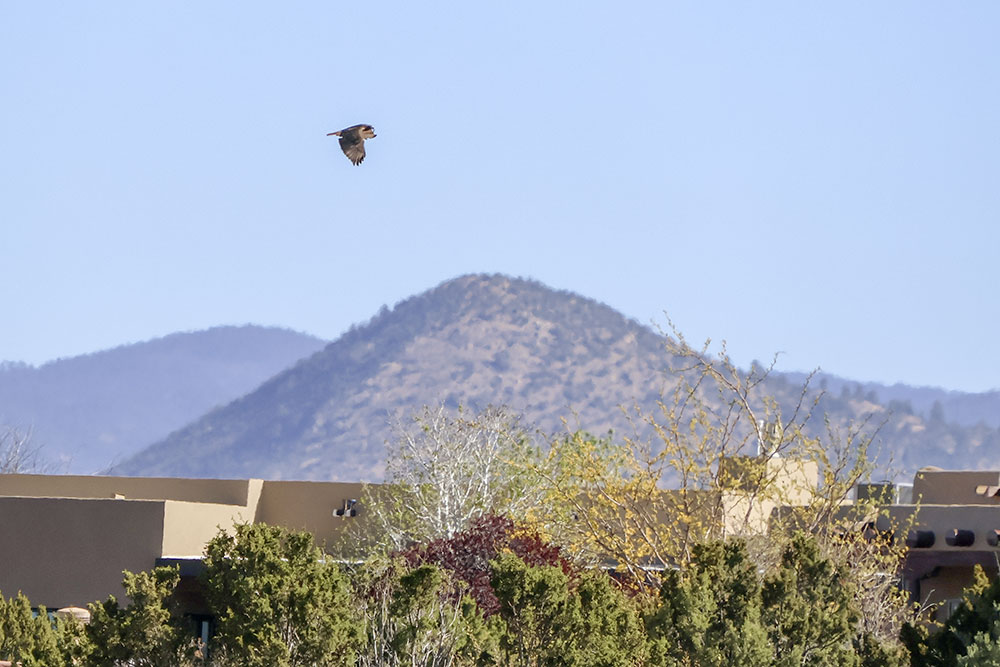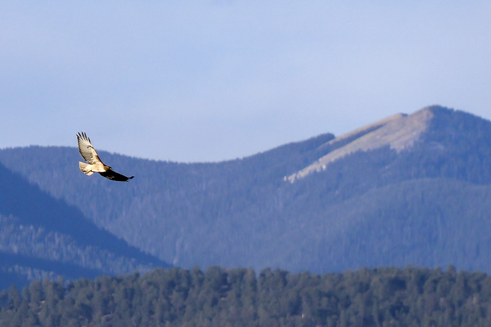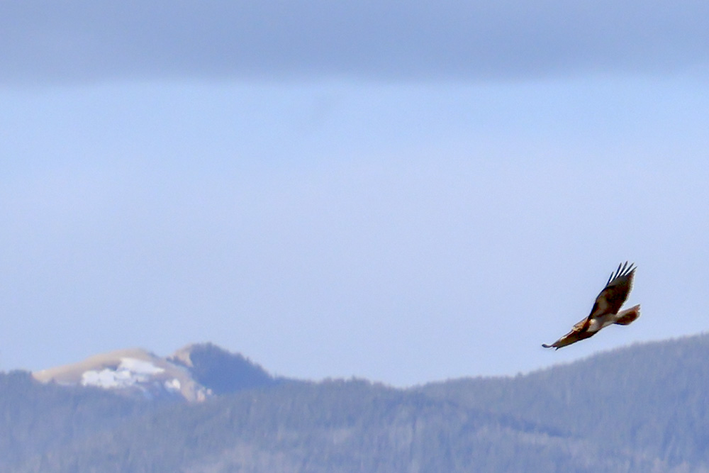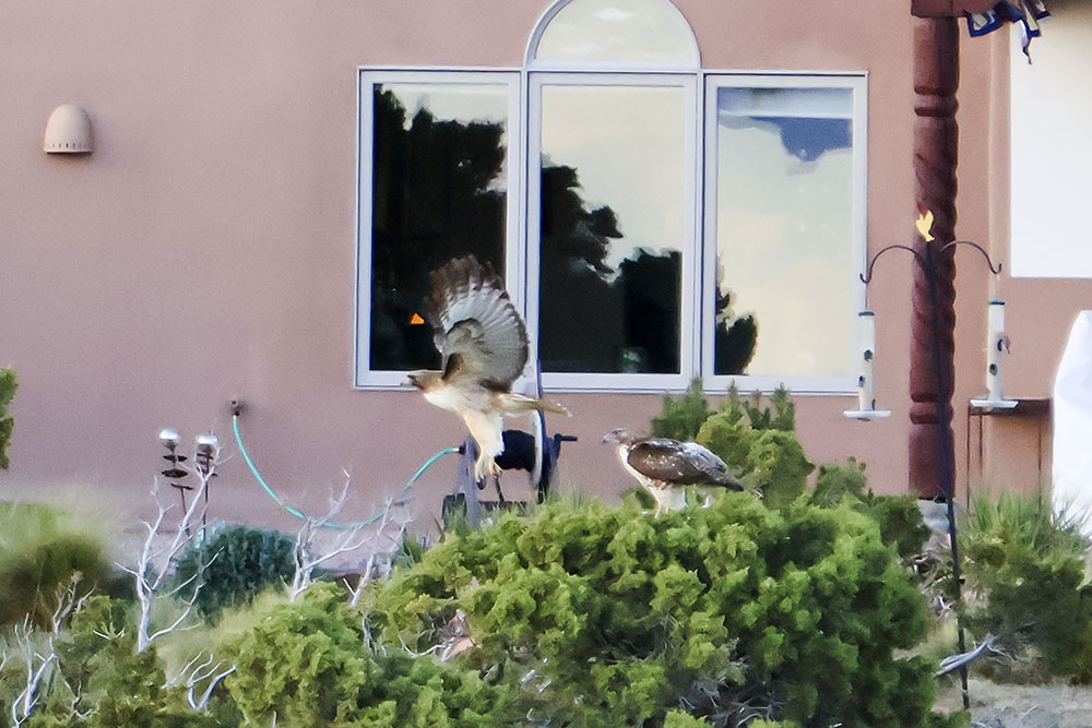 At the beginning of April, I noticed a pair of Red-tailed Hawks soaring above the greenbelt. I also spotted them sitting in the junipers, as well as carrying sticks up into a tall Aspen where they were building a nest (or maybe reinforcing an abandoned one). A week ago a storm moved in and we had a powerful micro-burst of wind. Since then, I haven’t seen them around the nest so they may have found another spot with more protection.