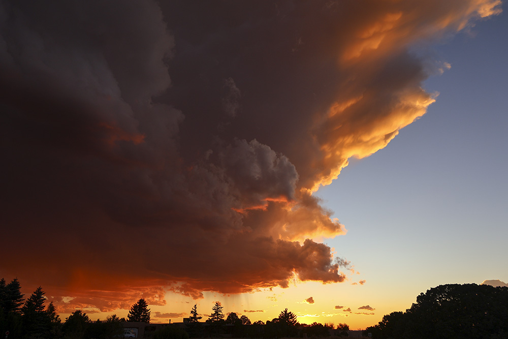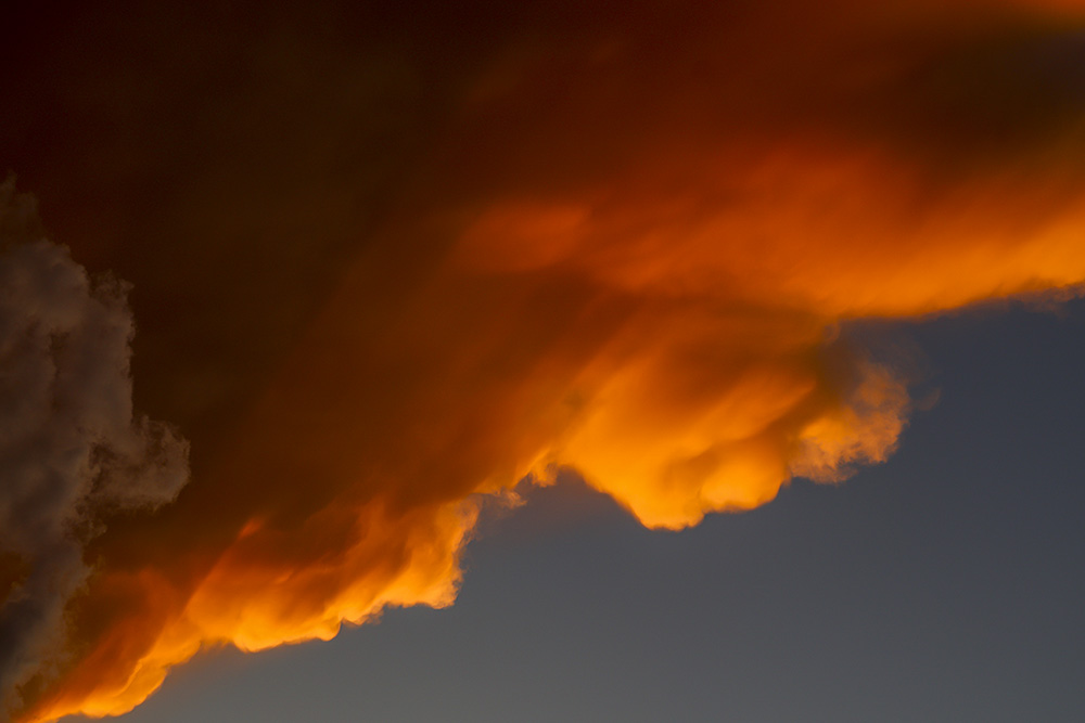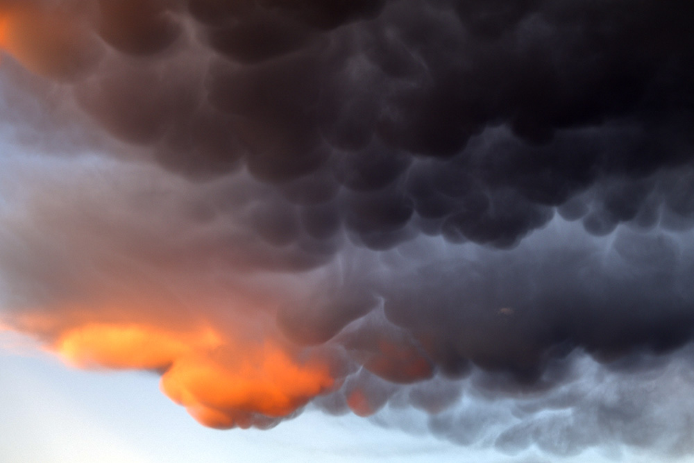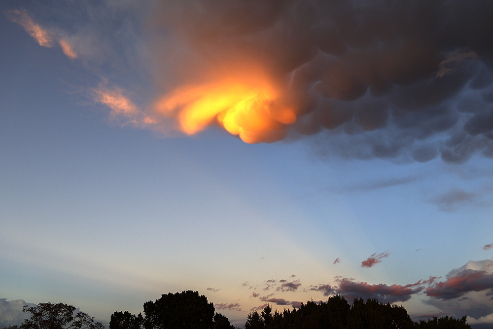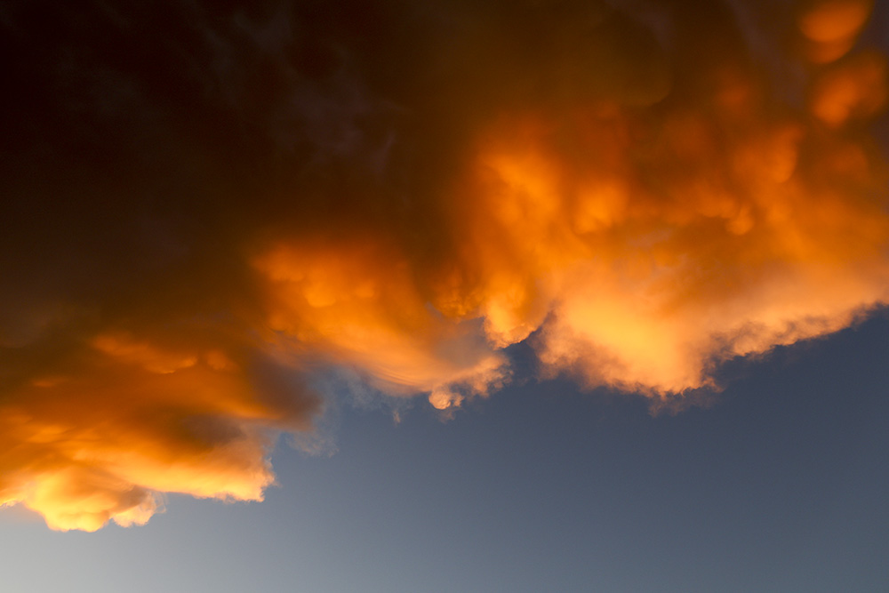 Amazing cumulonimbus clouds developed above us at sunset this evening. Udder-like mammatus clouds grew until the lightning and short rains and then they were gone.